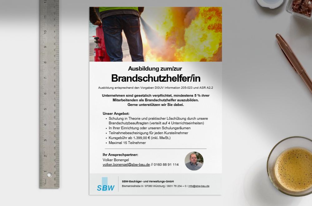 Unternehmen sind verpflichtet, mindestens 5 % ihrer Mitarbeitenden als Brandschutzhelfer auszubilden. Mit unserem neuen Schulungsangebot unterstützen wir Sie dabei, diese gesetzliche Vorgabe fachgerecht umzusetzen.